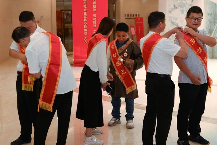 展厅内的一个特殊展区,陈列着著名全国劳模包起帆捐赠的74枚奖章,吸引了不少劳模工匠拍照留念,其中,就有同样来自上海的全国劳模司献凤的身影。她是首批参加全国劳模疗休养活动的劳模工匠中年纪最小的一位,今年28岁。
